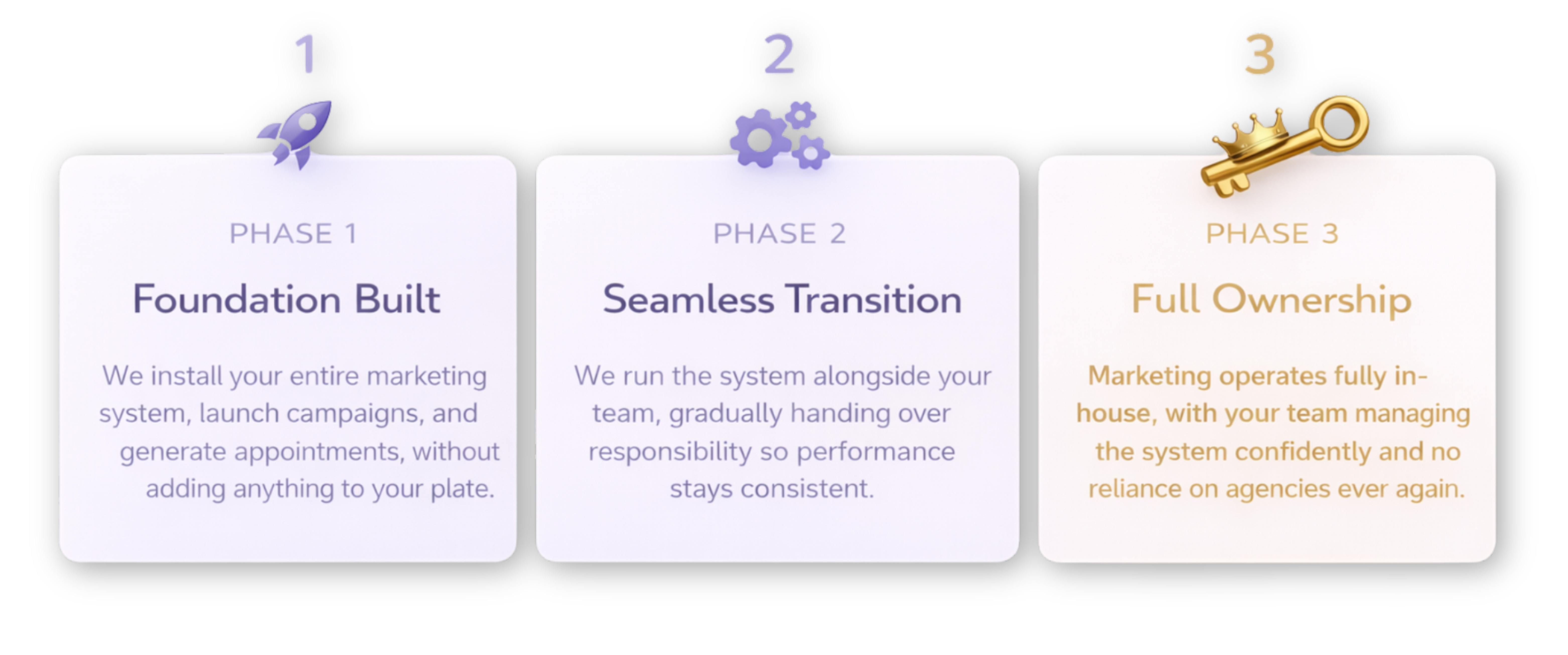 One system. Three phases. Zero long-term reliance on agencies.